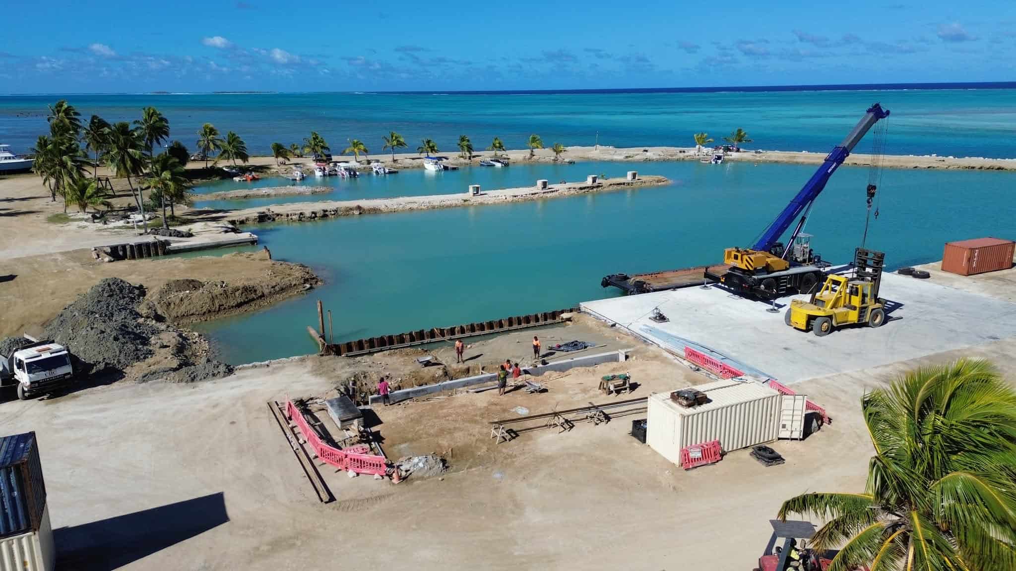 Aitutaki’s lifeline supply of food, fuel and other necessities are delivered by sea and received at the Arutanga Port. Currently cargo ships are unloaded outside the reef with freight transferred to the port on a single self-propelled barge. Conditions in the channel are sometimes too rough or cause damage to containers and freight onboard the barge. Ships often stay in the roadstead for 2-3 days for unloading.